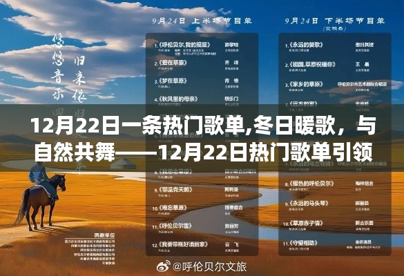 摘要:在寒冷的冬日里,一首温暖人心的歌曲如同阳光般照耀人心。12月22日的热门歌单以冬日暖歌为主题,引领着人们踏上寻美之旅。这些歌曲与自然共舞,让人感受到大自然的美丽和谐。在这个充满温馨和浪漫的季节里,让我们一起沉浸在美妙的歌声中,感受冬日的温暖和美好。