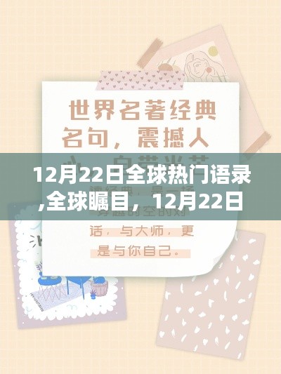 摘要:在备受瞩目的全球热门语录中,12月22日的语录闪耀着独特的光芒。这些语录汇聚了全球智慧,涵盖了各个领域,展现了人们对生活、未来和价值的深刻思考。这些语录不仅激励人心,也引导人们追求真理和美好。它们在全球舞台上引起广泛关注,成为激励人们前行的力量源泉。