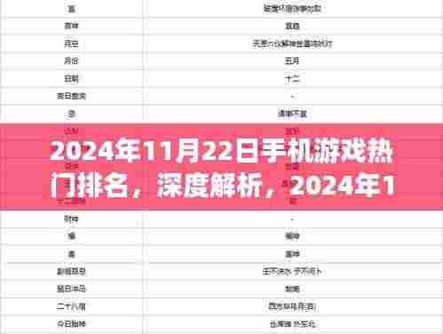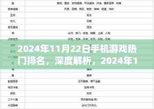 随着移动互联网的飞速发展,手机游戏已成为人们休闲娱乐的重要选择,本文将聚焦于2024年11月22日手机游戏热门排名中的若干款游戏,对其特性、使用体验、与竞品对比、优点和缺点以及目标用户群体进行深入分析,以帮助读者更全面地了解这些游戏的特点和魅力。