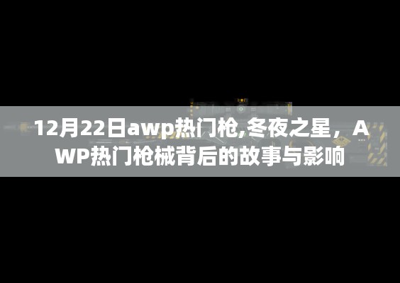 摘要:在12月22日,我们将聚焦于AWP热门枪械之一的“冬夜之星”。本文将探讨这把热门枪械背后的故事以及它对游戏界的影响。通过深入了解其设计背景、性能特点和在游戏中的表现,展现其在射击游戏界的地位与重要性。