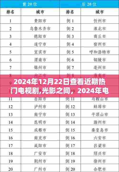 摘要:在2024年12月22日,我们观察到了近期热门电视剧的趋势,特别是在光影之间的表现。这些电视剧代表了2024年电视剧潮流的巅峰之作。以XXXX年XX月XX日的热门剧集为例,这些作品通过创新的剧情设计、出色的演员表现和先进的制作技术,吸引了大量观众的关注和喜爱。它们不仅丰富了人们的娱乐生活,也推动了电视剧行业的发展和创新。