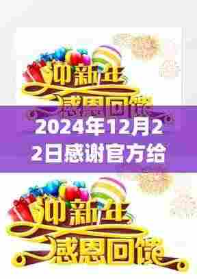 摘要:在2024年12月22日这个特殊的光辉时刻,感谢官方赠送的热门图片,感恩这份馈赠。这些图片背后隐藏着许多故事,让我们感受到那个时刻的独特魅力和意义。这些图片记录了那个特殊日子的美好瞬间,让我们回味无穷。