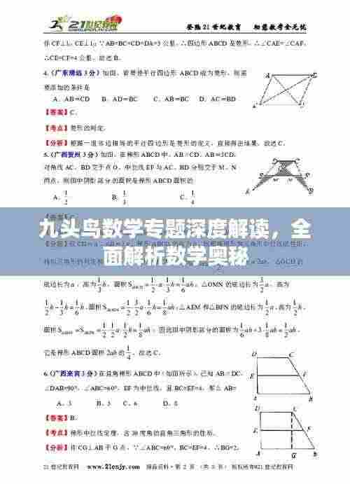 九头鸟数学专题以其独特的课程特色,为学生提供了一个全新的数学学习平台,该课程结合数学知识点,通过专题的形式,深入剖析数学的核心概念,帮助学生建立完整的知识体系,与传统的数学课程相比,九头鸟数学专题更加注重知识的连贯性和系统性,使学生在掌握数学知识的同时,能够灵活运用。