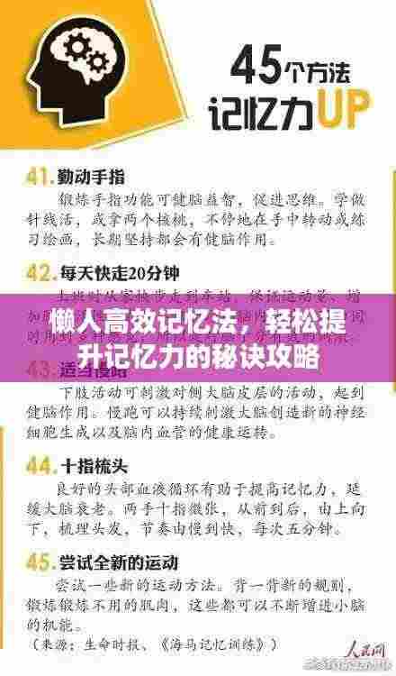 在这个信息爆炸的时代,我们需要处理的信息量越来越大,记忆力的重要性日益凸显,很多人常常抱怨自己记忆力不佳,难以记住需要掌握的知识和事物,我们就来探讨一种适合懒人的高效记忆法,让你轻松提升记忆力。