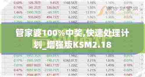 随着彩票和抽奖活动的普及,越来越多的人开始关注如何提高中奖的可能性。在这个背景下,“管家婆100%中奖,快速处理计划_增强版KSM2.18”应运而生。它不仅提供了科学的计划管理,还运用数据分析技术,以确保参与者能够在合理的范围内增加中奖的几率。