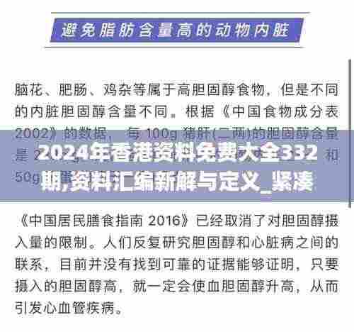 在信息时代的今天,获取和分享资料的重要性不言而喻。2024年香港资料免费大全332期成为了众多研究者和商业人士关注的焦点。这一期的资料汇编不仅包含丰富的信息,还提供了全新的解读与定义,为相关领域的研究提供了重要参考。无论是学术研究、市场分析还是政策研究,这份资料的价值不可小觑。
