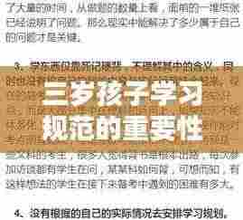 随着社会的进步和教育的普及,越来越多的家长开始重视孩子的早期教育,三岁孩子正处于好奇心旺盛、模仿能力强的关键时期,此时培养他们良好的学习规范,对其今后的学习和成长具有至关重要的意义。