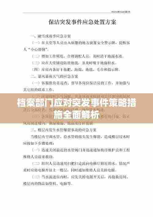 在当今社会,突发事件频繁发生,这些事件可能对档案部门的工作带来严重影响,档案部门作为维护和管理重要档案资料的机构,如何在突发事件中迅速应对,保障档案的安全与完整,是一项重要的任务,本文将探讨档案部门应对突发事件的意义、策略与措施。
