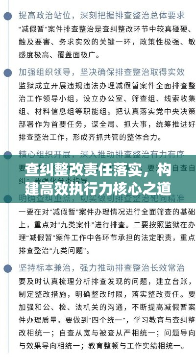 在当今社会,随着经济的快速发展和变革,各类组织面临着前所未有的挑战和机遇,为了更好地适应时代发展的需要,落实查纠整改责任成为了提升组织执行力的关键所在,本文将围绕这一主题展开讨论,探究其内涵、意义和实践方法。