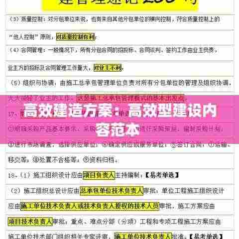 2. 提高质量:高效建造方案注重施工过程中的质量控制,通过严格的施工标准和规范的作业流程,确保项目质量达到预期目标。