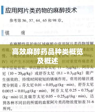 阿片类药物是最常用的高效麻醉药品之一,如吗啡、芬太尼等,它们主要用于镇痛,特别是在手术中及术后疼痛治疗,这类药物通过与大脑中的疼痛受体结合,阻断疼痛信号的传导,达到镇痛效果。