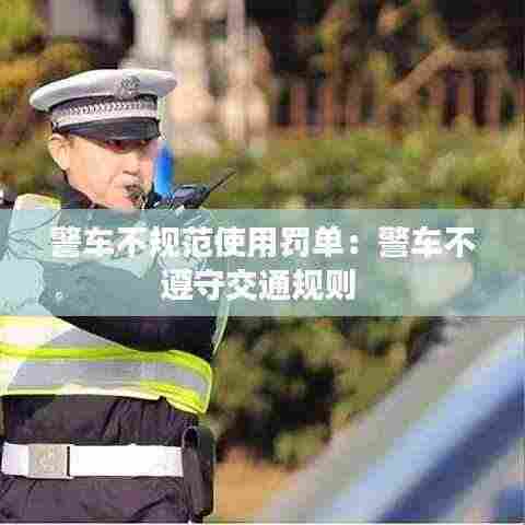 警车作为执法工具,其规范化使用至关重要。通过对警车不规范使用罚单,可以有效维护交通秩序,树立警车良好形象,保障人民群众生命财产安全。希望相关部门能够高度重视警车不规范使用问题,不断完善罚单制度,确保罚单制度得到有效执行,为我国道路交通安全做出更大贡献。