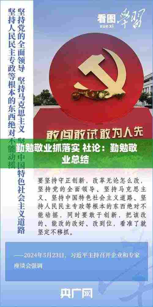 勤勉敬业是个人成长和社会进步的重要推动力。让我们以勤勉敬业的精神,为实现中华民族伟大复兴的中国梦而努力奋斗。在新时代的征程中,我们要不断弘扬勤勉敬业的优良传统,为推动我国经济社会发展贡献自己的力量。