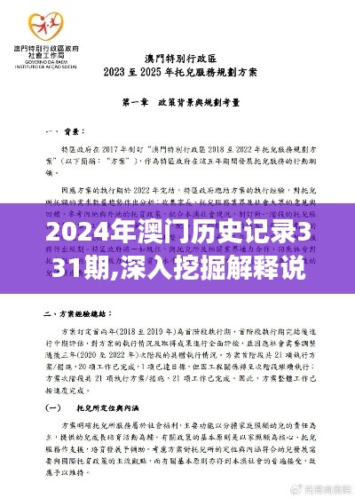 2024年澳门历史记录331期是对澳门历史和文化的一次深入探讨。这一期主要聚焦于澳门的独特发展历程、重要事件和影响力人物,通过对丰富历史资料的挖掘与分析,使读者更好地理解澳门这一特别行政区的魅力与复杂性。在阅读此期的过程中,你将不仅了解到澳门的历史背景,还能够见证它在全球化浪潮中的演变。