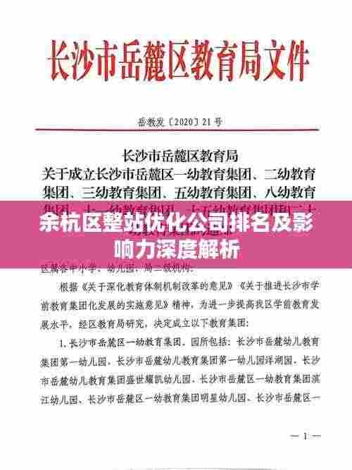 随着互联网技术的快速发展,网站优化已成为企业提升竞争力的重要手段,在余杭区,众多整站优化公司凭借专业的服务和卓越的技术实力赢得了广大企业的信赖,本文将深入探讨余杭区整站优化公司的排名及其影响力。
