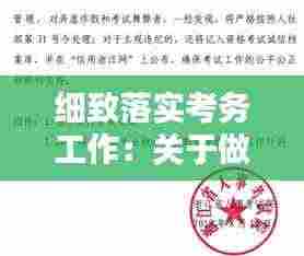 细致落实考务工作,是保障考试公平、公正、公开的重要保障。只有通过建立健全考务工作制度、优化试卷管理、强化监考工作、规范阅卷工作、加强信息化建设等措施,才能确保考试工作的顺利进行,为我国教育事业的发展做出积极贡献。