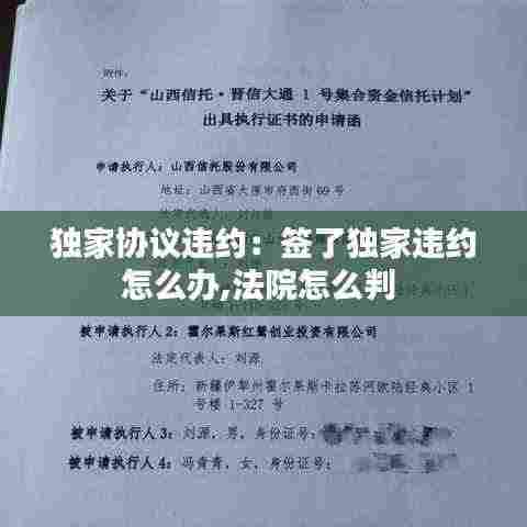 总之,独家协议违约是一种常见的商业纠纷,了解违约的原因、后果以及预防和处理措施,对于维护商业交易的稳定和合法权益具有重要意义。