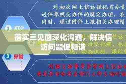 落实“三见面信访人”制度是一项重要的工作,通过面对面的沟通,可以深化双方的理解,提高问题解决的效率,我们也要认识到,制度的落实需要各方的共同努力和配合,我们要不断总结经验教训,完善沟通机制,确保“三见面信访人”制度能够更好地服务于群众,为构建和谐社会贡献力量。