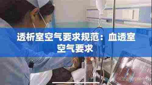 透析室是医院中用于治疗慢性肾功能衰竭患者的关键场所,其空气质量直接关系到患者的健康和治疗效果。为了保证透析室的环境卫生和安全,国家相关部门制定了严格的空气要求规范。以下将对透析室空气要求规范进行详细介绍。
