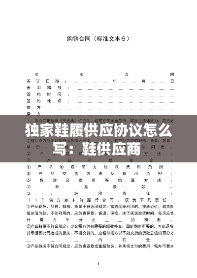1. 协议标题:协议的标题应简洁明了,如“XX品牌独家鞋履供应协议”。 2. 双方基本信息:包括供应商名称、地址、联系方式,以及销售商名称、地址、联系方式。确保信息准确无误。