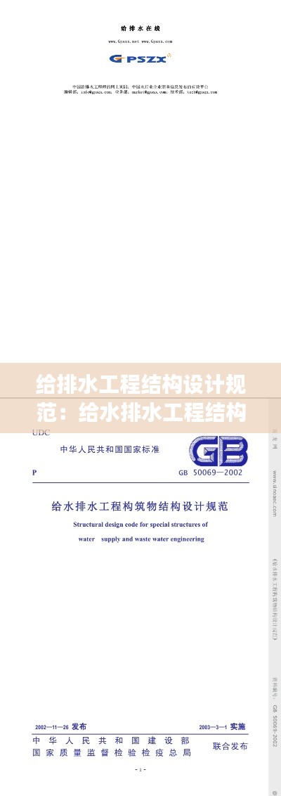 《给排水工程结构设计规范》是我国工程建设领域的一项重要技术法规,旨在规范给排水工程的结构设计,提高工程质量,保障人民群众的生命财产安全。该规范由住房和城乡建设部颁布,适用于新建、改建、扩建的给排水工程的设计、施工和验收。