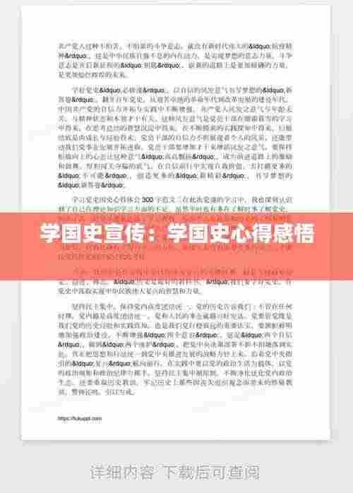 国史宣传是一项长期而艰巨的任务,需要全社会共同努力。通过学国史宣传,我们可以更好地传承中华民族的优秀文化,为实现中华民族伟大复兴的中国梦贡献力量。让我们携手共进,共同书写国史宣传的新篇章。