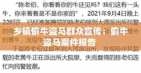 在我国广袤的农村地区,偷牛盗马的现象时有发生,这不仅给农民群众带来了经济损失,也影响了农村社会的和谐稳定。为了提高群众的法律意识,减少此类事件的发生,各地乡镇纷纷开展了群众宣传活动,以期唤起广大农民的警觉和参与。