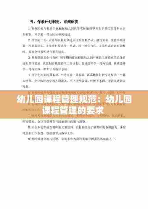 幼儿园课程管理规范是确保幼儿教育质量的重要保障。通过遵循课程设置原则、规范课程内容、实施课程实施规范、管理课程资源以及进行课程评估与改进,幼儿园能够为幼儿提供全面、科学、系统的教育,促进幼儿的全面发展。教育工作者应不断提高自身素质,努力践行课程管理规范,为幼儿的健康成长奠定坚实基础。