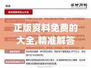 获取正版资料不仅能确保信息的准确性和完整性,还能保护版权,支持知识的传播与分享。在互联网时代,越来越多的人希望通过合法途径获取资料,而不是依赖于盗版或侵权内容。因此,了解“正版资料免费的大全”可以帮助用户找到符合自己需求的资源,并使他们在学习和工作中事半功倍。