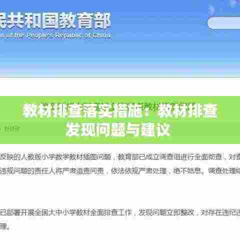 教材作为教育过程中不可或缺的工具,其质量直接影响到学生的学习效果和教学质量。为了确保教材的准确性和适宜性,我国教育部门近年来对教材进行了全面排查,并采取了一系列落实措施。本文将详细介绍教材排查的背景、目的、实施步骤以及后续的保障措施。
