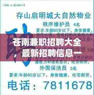 随着经济的不断发展和社会的持续进步,越来越多的人选择兼职来充实自己的生活和增加收入,苍南县作为一个经济活跃的地区,兼职市场需求也日益增长,本文将为您介绍苍南个人兼职招聘网的最新招聘信息,帮助您轻松找到适合自己的兼职工作。