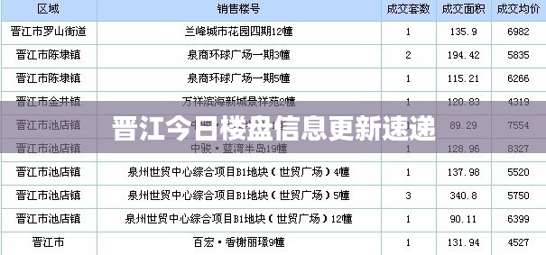 随着城市的发展与繁荣,晋江的房地产市场日益活跃,楼盘信息不断更新,本文将为您详细介绍晋江今日楼盘信息的最新动态,带您领略这片热土的房地产风采。