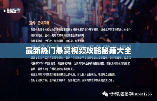 随着互联网的普及和社交媒体的飞速发展,悬赏视频已成为广大网友热衷参与的活动,通过完成各种任务,观看视频,获取线索,参与者有机会赢取丰厚的奖励,本文将为你提供一份详尽的悬赏视频攻略,助你轻松掌握最新动态,提高成功率。