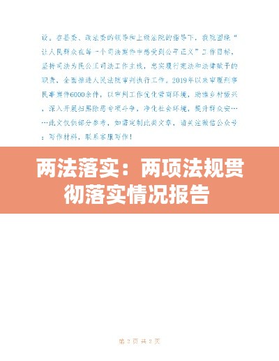 总之,“两法落实”是我国法治建设的重要组成部分,对于维护社会公平正义、保障公民合法权益具有重要意义。在新的历史时期,我们要继续推进“两法落实”,为建设法治国家、法治政府、法治社会贡献力量。