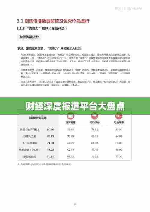 财经深度报道是媒体传递经济动态、解读经济政策、分析市场动态的重要途径,随着互联网的普及和数字化进程的加快,财经深度报道的平台也日益丰富多样,本文将介绍一些主流的财经深度报道平台,以及它们的特点和影响力。