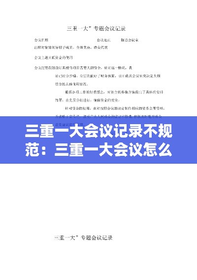 三重一大会议,即“重大决策、重要人事任免、重大项目安排和大额度资金使用”的会议,是企事业单位和政府部门决策过程中的重要环节。然而,在实际操作中,部分单位的三重一大会议记录存在不规范现象,这不仅影响了决策的透明度和公正性,也可能导致决策失误和腐败问题的发生。本文将探讨三重一大会议记录不规范的具体表现及其危害,并提出相应的改进措施。
