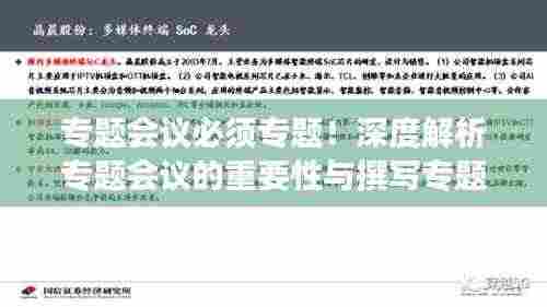 在现代社会,专题会议是企业、组织乃至政府部门推动工作、交流经验的重要平台,有时我们可能会遇到这样的情况:原本设定的专题会议并未按照预定的方向进行,或者会议内容并未紧扣主题,专题会议不专题可以吗?本文将从不同角度进行探讨,并阐述如何撰写相关表述。