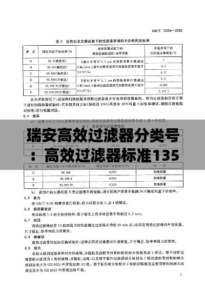瑞安高效过滤器作为一种先进的空气净化设备,广泛应用于各种场合,如医院、实验室、制药厂等对空气质量要求较高的场所。高效过滤器的主要作用是去除空气中的尘埃、细菌、病毒等有害物质,确保室内空气质量。为了方便用户选择和使用,瑞安高效过滤器根据不同的性能指标和用途进行了分类。本文将详细介绍瑞安高效过滤器的分类号及其特点。