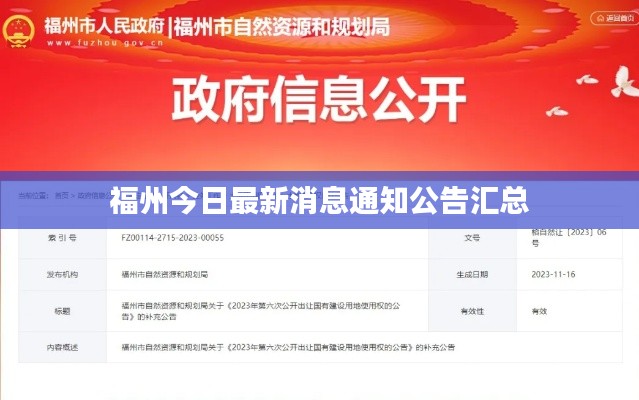 随着福州市的快速发展,各类通知公告也日新月异,本文将围绕“福州今日最新通知公告”这一主题展开,为广大市民朋友详细介绍最新的通知公告内容,以便大家及时了解并作出相应安排。