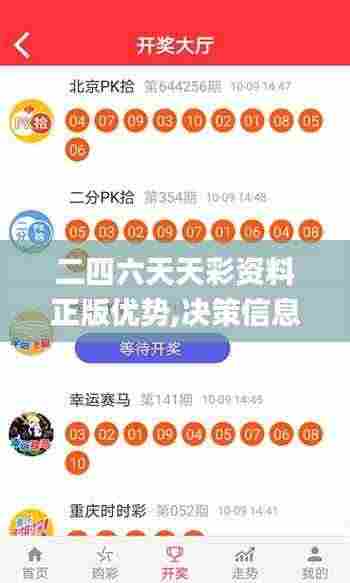 在彩票市场上,信息的获取和使用直接关系到玩家的决策和盈利能力。二四六天天彩资料正版优势就是对这种信息的精准把握和灵活运用。由于彩票的随机性质,很多人希望通过分析和研究,找到一些规律和趋势,以提升他们的中奖概率。