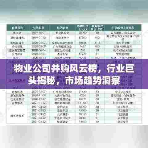 随着城市化进程的加快,物业服务行业的发展迅猛,不少物业公司通过并购扩大规模、提升服务质量,本文将围绕“物业公司并购额排名”,揭示行业巨头及市场趋势。