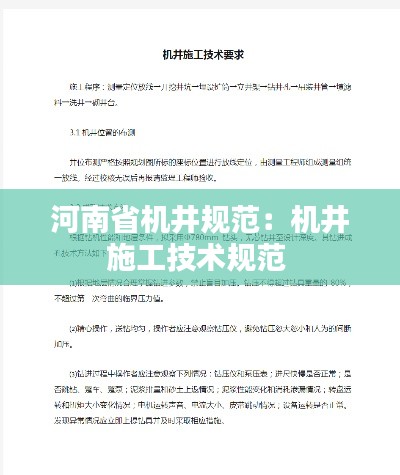河南省机井规范是根据国家相关法律法规和河南省实际情况制定的,旨在规范机井的设计、施工、管理、维护和报废等环节。规范明确了机井建设的基本要求、技术标准、安全规定以及运行维护要求等。