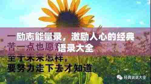 在这个充满挑战与机遇的时代,我们都需要一些励志的话语来激发内心的能量,坚定前行的步伐,本文为您带来励志能量录语录大全,愿这些话语能激励您追求梦想,勇攀高峰。