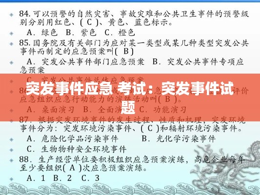 在现代社会,突发事件的发生已经成为常态。自然灾害、公共卫生事件、恐怖袭击等突发事件,都可能对人类社会造成严重影响。为了提高应对突发事件的能力,突发事件应急考试应运而生。这种考试旨在检验和提升政府、企事业单位以及个人在面对突发事件时的应急响应能力和决策水平。
