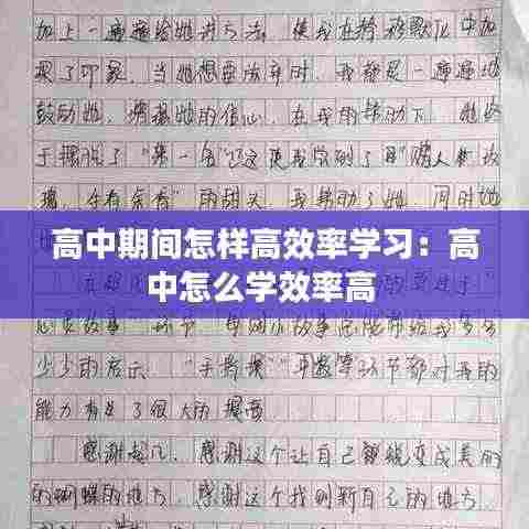 高中期间,通过明确学习目标、制定合理的学习计划、优化学习环境、掌握学习技巧、合理分配时间、保持良好的作息习惯、寻求帮助与反馈以及保持积极心态,你可以提高学习效率,取得更好的成绩。记住,高效学习不仅仅是为了应对考试,更是为了培养自己的能力,为未来的发展打下坚实基础。