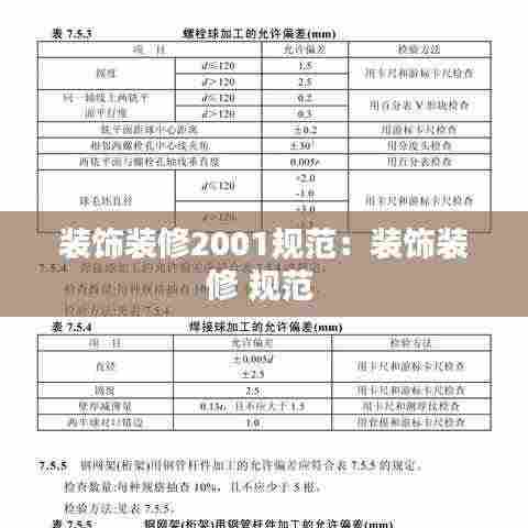 《装饰装修2001规范》是我国建筑装饰行业的重要标准之一,自2001年发布以来,对建筑装饰装修工程的设计、施工、验收等方面起到了重要的指导作用。该规范旨在提高建筑装饰装修工程的质量,确保工程的安全、环保和美观,促进建筑装饰行业的健康发展。