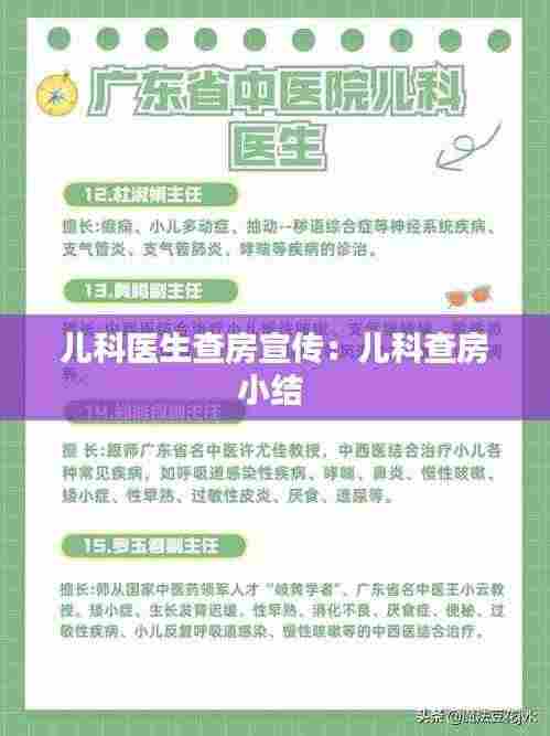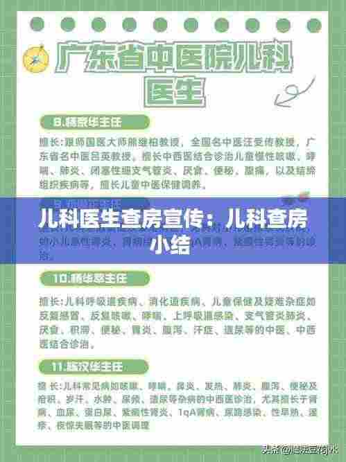 儿科医生查房是保障患儿健康的重要环节,加强查房宣传,提高医生和公众对查房工作的认识,有助于提升医疗质量,促进儿童健康事业的发展。让我们共同努力,为孩子们的健康成长保驾护航。