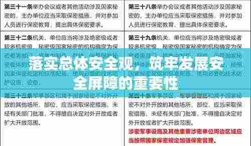在当今世界,安全形势错综复杂,各种风险挑战层出不穷,在这样的背景下,落实总体安全观显得尤为重要,总体安全观是我们党在长期实践中形成的重要理念,对于维护国家安全、促进经济社会发展具有重要意义,本文将探讨总体安全观的重要性,分析如何有效落实这一理念,以期为实现中华民族伟大复兴的中国梦提供有力保障。