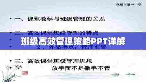 在当今教育环境下,班级高效管理对于提升教学质量、促进学生全面发展具有重要意义,一个优秀的班级管理者不仅需要丰富的教育知识,还需要掌握有效的管理技巧,本次ppt展示将为我们介绍如何实现班级高效管理。
