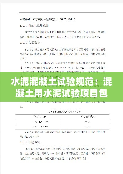 水泥混凝土作为一种广泛应用于建筑、道路、桥梁等领域的建筑材料,其质量直接影响工程的安全和使用寿命。为了确保水泥混凝土的质量,我国制定了相应的试验规范,旨在通过科学、规范的试验方法,对水泥混凝土的各项性能进行评估。本文将简要介绍水泥混凝土试验规范的相关内容。